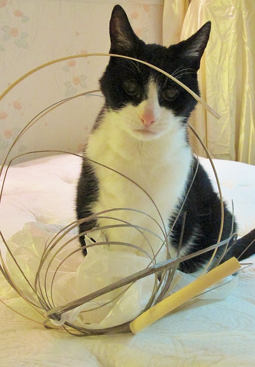 When I finished the second row of weavers (the horizontal strips) now I knew I had a problem. I’m still wondering where my brain went that day because I sat there and stared at the thing for 5 minutes. 5 minutes! When my brain came back from hiding I realized I used the weavers for the stakes. 2 colors in a checkerboard Lynn, 2 colors! All stakes one color and all weavers another. So simple.