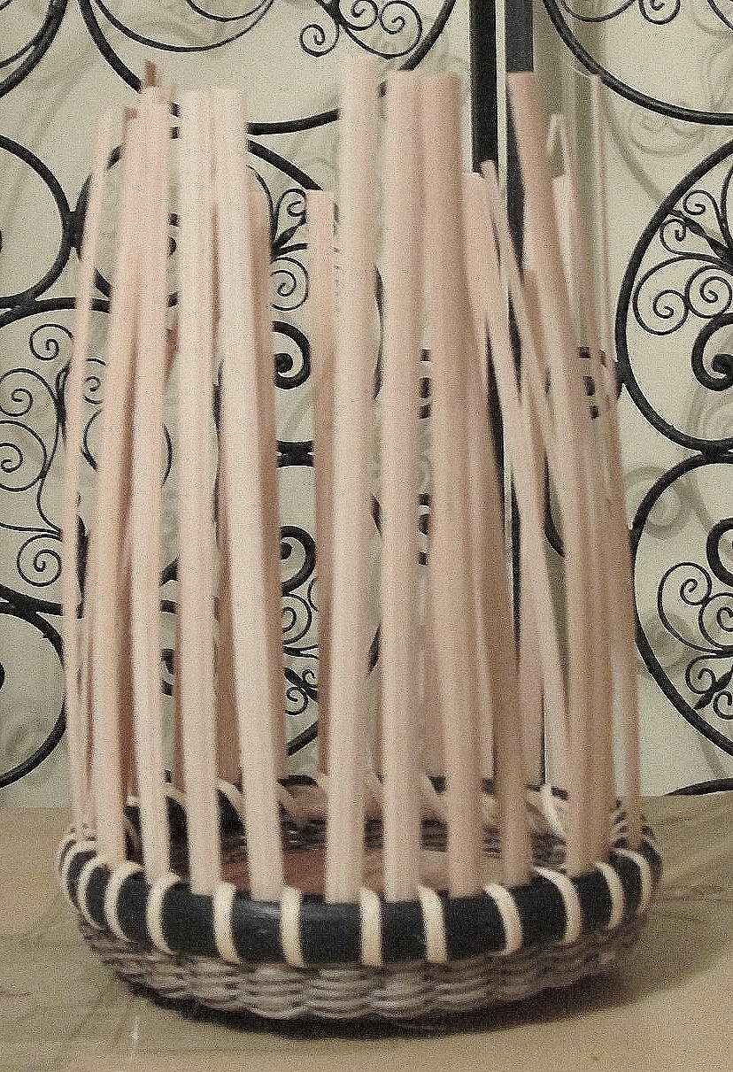 Weaving rib baskets is not really my ‘thing’. I find them difficult to shape and also tedious to weave. Using a different weaving material made it more interesting for me.